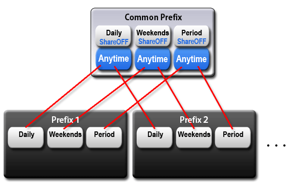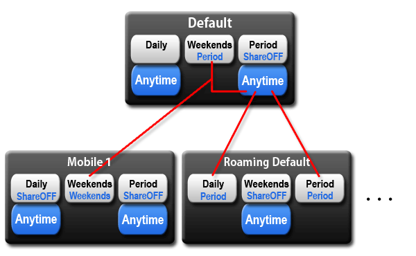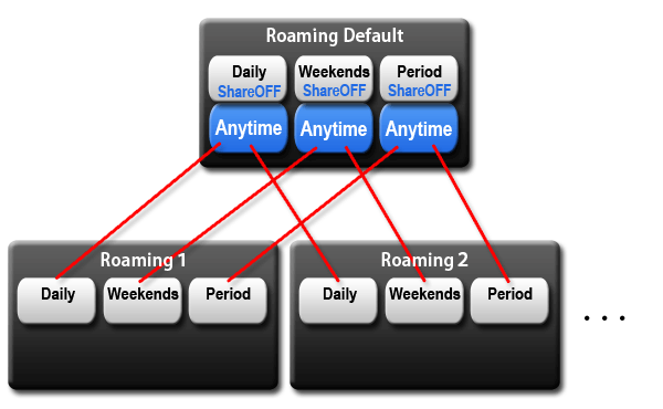 - The Share Anytime item on any phone type can be selected to the Daily or Weekends or Period on Default.