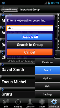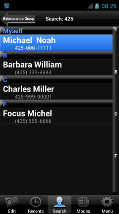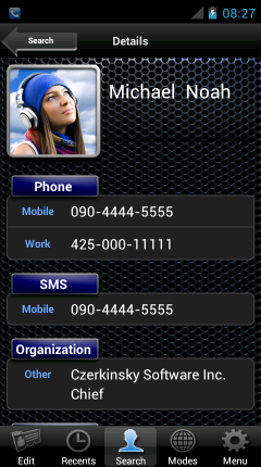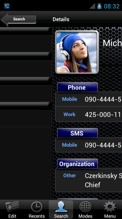 Run apps in details screen. For example, phone call, e-mail, etc.