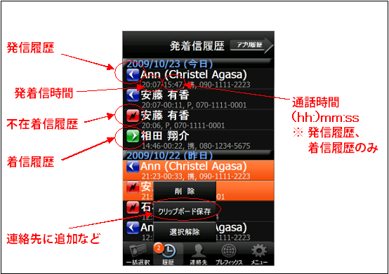 発着信履歴