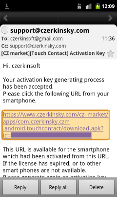 Click the URL link in email from your smartphone to download app.
