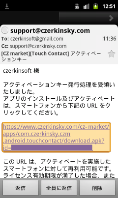CZ market にログインして発行したアクティベーションキーの受信メールを開きます。
