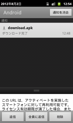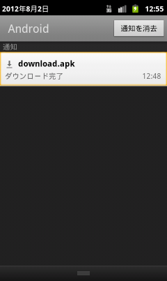 通知バーを下げて、ダウンロード完了を待ちます。